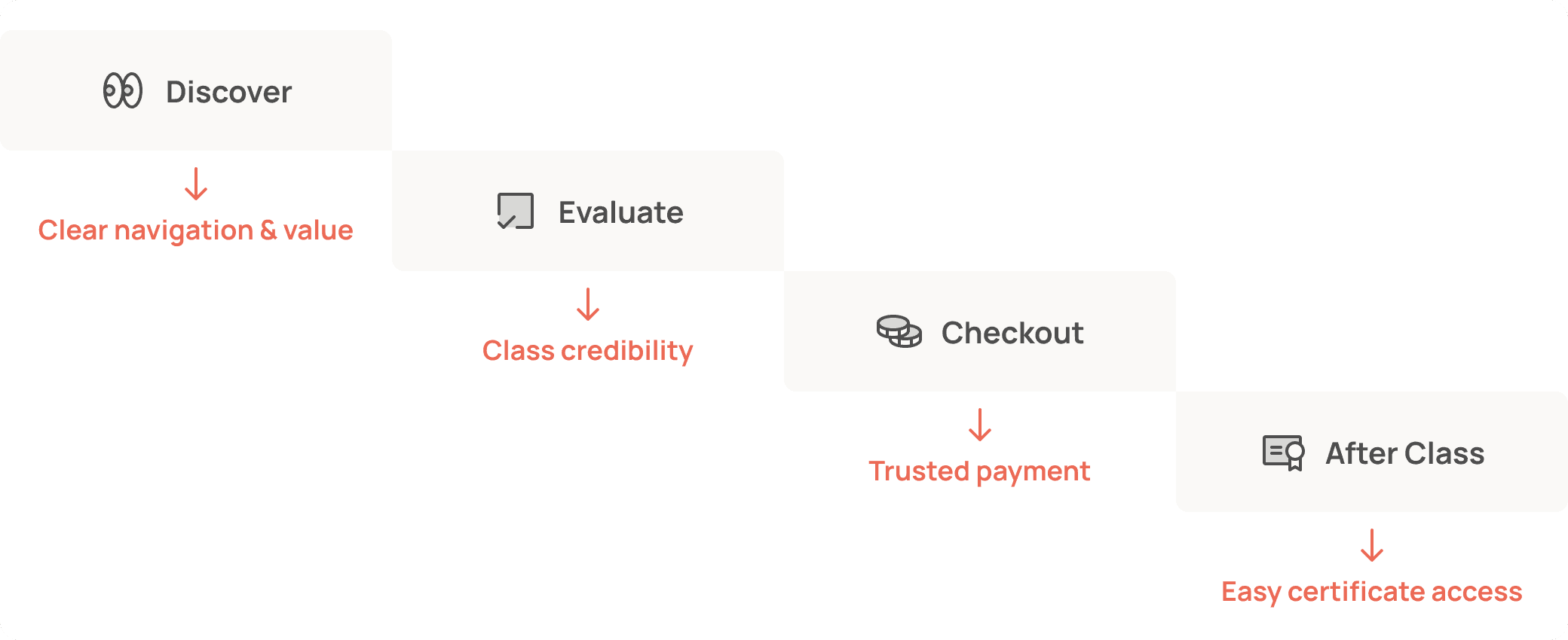 I interviewed new and returning learners and found they needed clearer value, simple onboarding, and secure payment flows, especially price-sensitive users wary of scams.